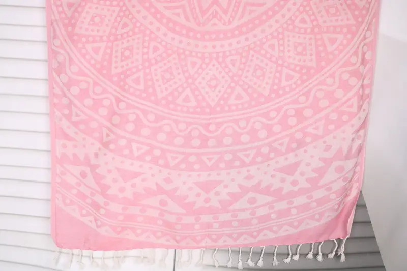 Characterized by superior absorbency and durability, the Round Pattern Towel is meticulously crafted from organic Turkish cotton, ensuring a soft and resilient texture. The towels measure 40x71 inches or 100x180 centimeters and weigh 300 grams, providing a substantial size for various uses while maintaining a lightweight quality. The fiber composition allows for minimal shrinkage and consistent hand-weaving tolerances of 1-2.5 centimeters.