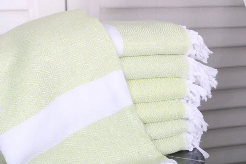 The towels are characterized by their organic Turkish cotton or natural linen composition, ensuring durability and high absorbency. The fiber density provides excellent water retention, while the natural linen variant enhances breathability. Each towel measures 40x71 inches or 100x180 cm and weighs 360 grams, with a hand-weaving tolerance of 1-2.5 cm.