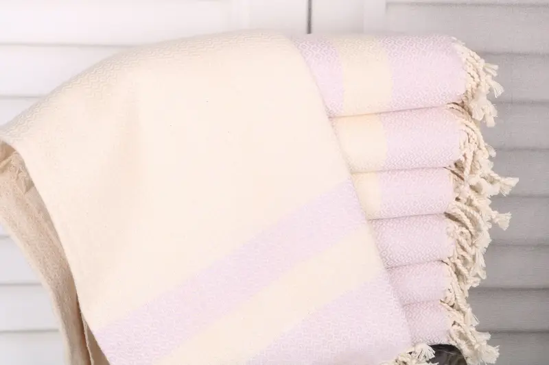 The towels are crafted from organic Turkish cotton or natural linen, ensuring enhanced absorbency and durability. The material composition promotes superior moisture-wicking properties, resulting in effective drying. Each towel measures 40x71 inches or 100x180 centimeters, with a weight of 370 grams. Hand-weaving tolerances range between 1-2.5 centimeters, which is typical for artisanal items.