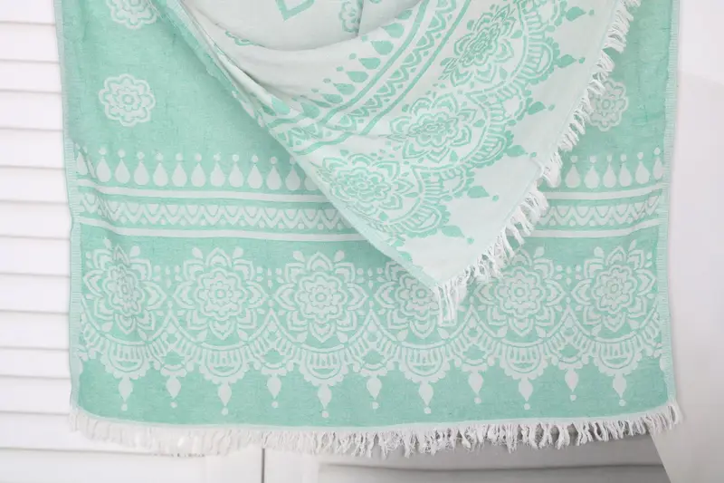 Characterized by its organic Turkish cotton fiber composition, this towel ensures enhanced absorbency and breathability, making it ideal for various applications. Resulting in a product of high quality, the towel measures 36x73 inches or 90x185 cm, with a weight of 340 grams, and exhibits a hand-weaving tolerance of up to 1-2.5 cm. Ensuring precision, the towel can be personalized with embroidery, monogramming, or lettering as per the customer's choice, with options available in various fonts, colors, and placements.