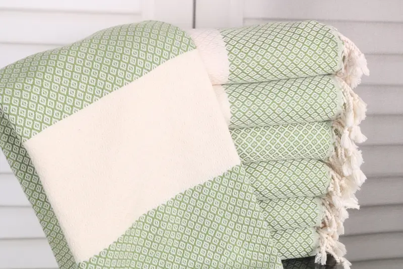 The Diamond Towel is characterized by its fiber composition of organic Turkish cotton or natural linen, ensuring superior absorbency and breathability. Measuring 36x71 inches or 90x180 cm with a weight of 380 grams, the towel provides a balance between lightness and sturdiness. Hand-weaving tolerances of 1-2.5cm allow for slight variations in dimensions.