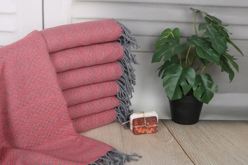 Organic Turkish cotton or natural linen fibers ensure superior absorbency and soft texture. Resulting in a towel that excels in moisture management. Characterized by a size of 70x40 inches or 100x180 cm and a weight of 450 grams, it offers durability while being lightweight. Hand-weaving tolerances may vary up to 1-2.5 cm.