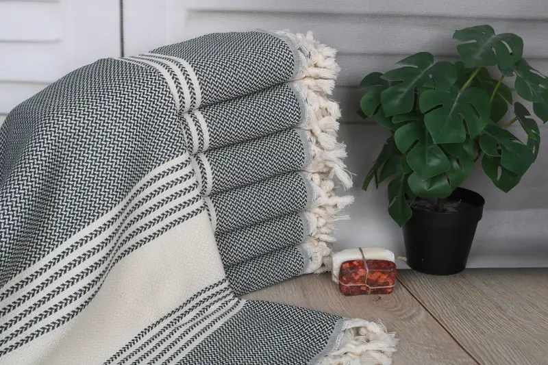 The Monogram Turkish Beach Towel is characterized by its durable construction and high-quality materials. The towel is crafted from organic Turkish cotton or natural linen, ensuring excellent absorbency and softness. The fiber composition contributes to its resilience, resulting in a long-lasting product suitable for diverse uses.