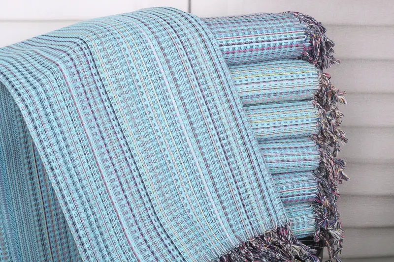 The Geometric Towel is characterized by its organic Turkish cotton or natural linen composition, ensuring high absorbency and softness. Resulting in a substantial weight of 380 grams, the towel is meticulously crafted with a 40x71 inches dimension, translating to 100x180 cm. Hand-woven tolerances allow for slight variations of 1-2.5 cm.