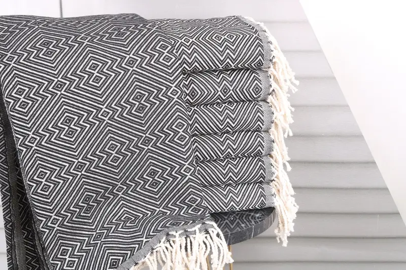 These towels are crafted from organic Turkish cotton or natural linen, ensuring high absorbency and durability. Characterized by their 40x75 inches (100x190 cm) dimensions and weight of 400 grams, they offer a balance of utility and comfort. Hand-weaving tolerances of 1-2.5cm provide a slight variation in size.