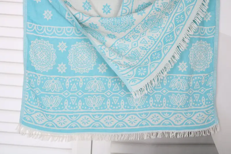 Characterized by its premium fiber composition, this towel incorporates organic Turkish cotton or natural linen. Resulting in excellent absorbency and durability, these materials ensure the towel's effectiveness for various applications. Each towel measures 36x71 inches or 90x180 cm, with a weight of 320 grams, offering a substantial yet lightweight option. The dimensions are accurate to a tolerance of 1-2.5 cm due to hand-weaving processes.