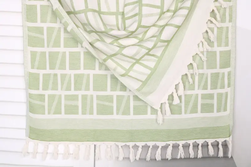 Characterized by its fiber composition, this towel is crafted from organic Turkish cotton, ensuring superior absorbency and softness. Measuring 34x69 inches or 85x175 cm, and weighing 360 grams, it is designed with a tolerance of 1-2.5 cm for hand-weaving. The towel's customization includes options for personalizing with embroidery or monogramming, offering potential buyers various personalization choices.