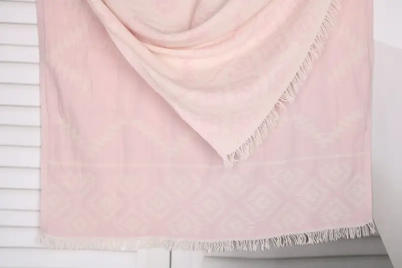 The towel is fabricated from organic Turkish cotton or natural linen, ensuring durability and absorbency. Resulting in a lightweight yet robust textile with a weight of 320 grams and dimensions of 36x71 inches or 90x180 cm. Hand-weaving tolerances range from 1-2.5 cm.