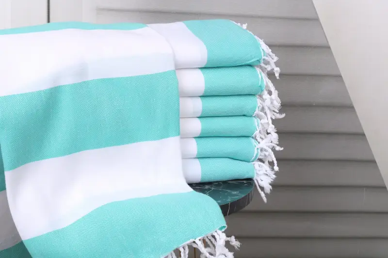 Characterized by their premium fiber composition, these towels are crafted from organic Turkish cotton or natural linen, ensuring superior absorbency and durability. Resulting in a weight of 290 grams, these towels offer a robust structure with dimensions of 40x71 inches or 100x180 cm, with a tolerance of 1-2.5 cm in hand-weaving. Emphasizing customization, these towels can be personalized with embroidery, monogramming, or custom designs, with pre-shrunk properties.
