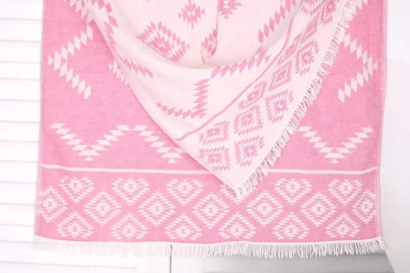 Characterized by its robust fiber composition, the Kilim Towel is crafted from organic Turkish cotton or natural linen, ensuring excellent absorbency and durability. Measuring 36x71 inches or 90x180 cm, this beach towel weighs 320 grams, resulting in a lightweight yet sturdy textile. Tolerances in hand-weaving may vary by 1-2.5 cm.
