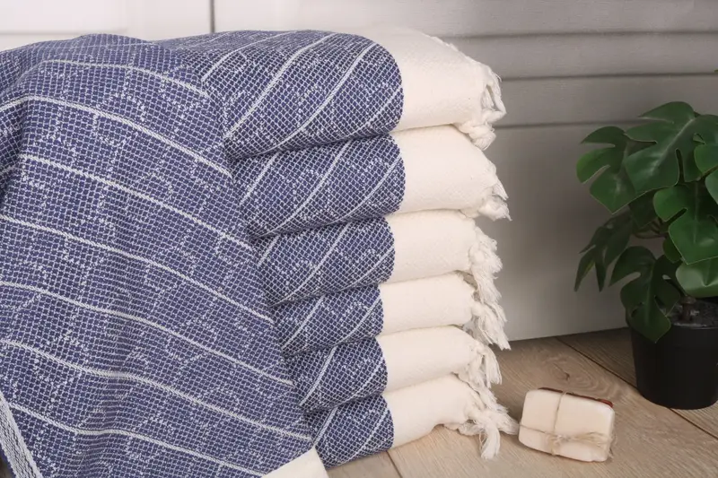 Organic Turkish Cotton characterizes this hand towel, ensuring durability and high absorbency. Measuring 36x18 inches or 45x90 cm, the towel weighs 120 grams. It exhibits a tolerance of 1-2.5 cm for hand-weaving.