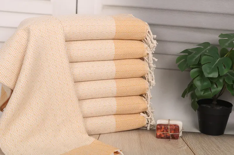 Characterized by a 36x18 inches or 45x90 cm dimension, the Diamond Hand Towel is crafted from organic Turkish cotton or natural linen. Resulting in a weight of 122 grams, this towel is renowned for its high absorbency and durability, ensuring long-lasting use and superior performance. Pre-shrunk and ready for immediate use, the towel offers a tolerance of 1-2.5 cm in hand-weaving.