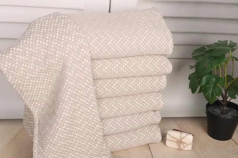 Characterized by an organic Turkish cotton composition, the herringbone hand towel offers superior absorbency and durability. Measuring 32 inches by 20 inches or 80 cm by 50 cm and weighing 100 grams, it ensures precise hand-weaving tolerances between 1-2.5 cm.