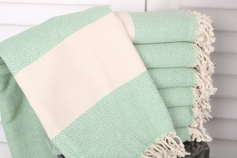 Characterized by organic Turkish cotton or natural linen fibers, the Diamond Towel ensures high absorbency and durability. Ensuring precision, the towel measures 40x71 inches or 100x180 centimeters, weighing approximately 376 grams. Hand-weaving tolerances range between 1-2.5 centimeters.