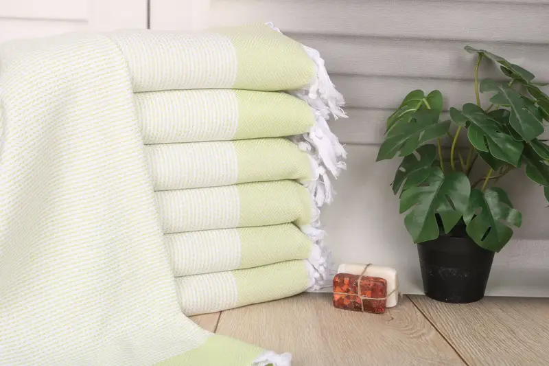 Characterized by high-quality organic Turkish cotton, the 18"x40" Pistachio Green Cotton Dish Towel ensures superior absorbency and durability. Weighing 100 grams, this kitchen and tea towel measures 40x18 inches or 45x100 cm, with hand-weaving tolerances of 1-2.5cm. Ensuring customization, the towels can be personalized with embroidery, monogramming, or logos for a unique touch. Pre-shrunk, these towels are ready for immediate use, shipped globally via DHL Express, FedEx, and UPS within 2-5 days. Returns and exchanges are accepted within 7 day...