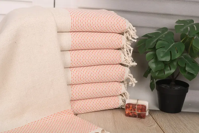 The towels are made of organic Turkish cotton or natural linen, characterized by high absorbency and durability. Ensuring optimal performance, they measure 40x20 inches or 50x100 cm with a weight of 120 grams, with hand-weaving tolerances of 1-2.5 cm. Resulting in personalized options, customers can choose embroidery customization with letters, initials, or logos, subject to return/exchange policies excluding personalized items. Resulting in efficient logistics, these towels are shipped worldwide with a tracking system, ensuring the packages ar...