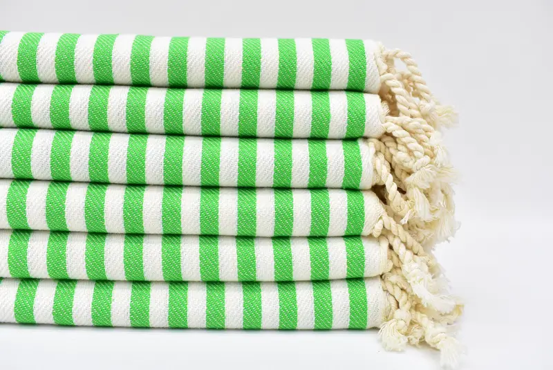 The product utilizes 100 percent organic cotton, ensuring high absorbency and durability. Characterized by a fingertip size, the towel measures 40x18 inches (100x45 centimeters), with a tolerance of 1-2.5 centimeters due to hand-weaving techniques. Weighing 100 grams (3.5 ounces), it is ideal for multiple uses.
