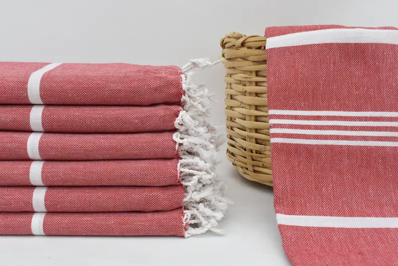 Each towel is woven from 100 percent organic cotton, ensuring superior absorbency and a high-quality texture. Measuring 70x40 inches or 180x100 centimeters, these towels have a weight of 270 grams or 9.5 ounces. Tolerances of hand-weaving may result in dimensions that are slightly smaller or larger, up to 1-2.5 centimeters.