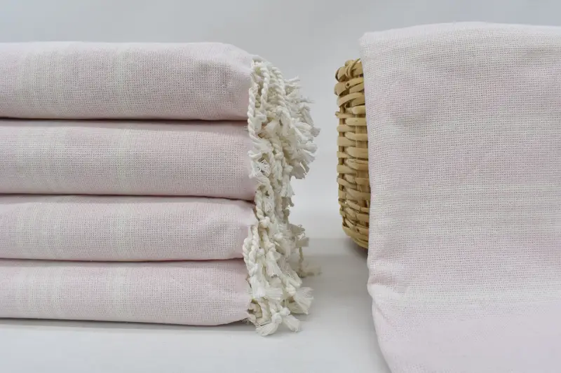 This light pink striped towel is characterized by its material composition, crafted from 100 percent organic cotton ensuring a high degree of absorbency and comfort. Dimensions of this fingertip-sized bath towel are 63 inches by 38 inches, equivalent to 160 centimeters by 95 centimeters, with a weaving tolerance of 1-2.5 centimeters and a weight of 430 grams. Embroidery customization options include monograms with specified letters, colors, fonts, and placements, enhancing the personalized gift potential for events such as weddings or bridal sh...