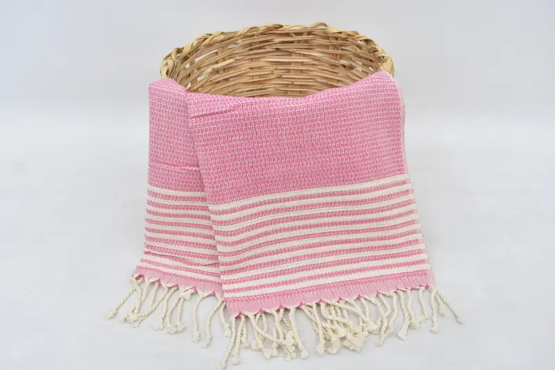 The Turkish Hand Towel is characterized by its 100% natural cotton composition, ensuring high absorbency and durability. Measuring 45 inches by 20 inches (115 cm by 50 cm), the towel features a lightweight design with a weight range of 100 to 150 grams. Variations in size of up to 2.5 cm may occur due to hand-weaving techniques.