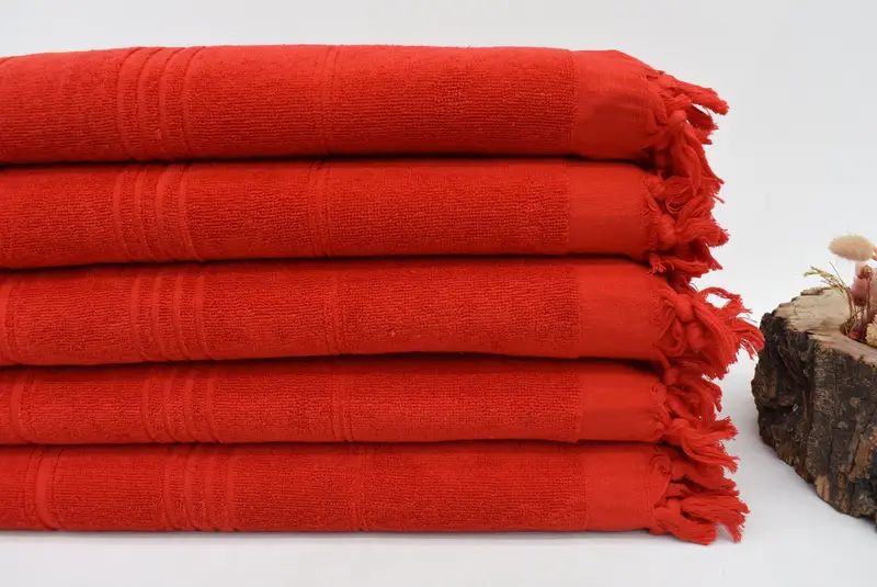 Turkish Beach Towel, characterized by its 100% natural cotton fiber composition, ensures superior absorbency and softness. Resulting in a weight of 14-17 ounces (400-500 grams), it measures 70 inches x 36 inches (180cm x 90cm), with possible hand-weaving tolerances of 1-2.5cm.