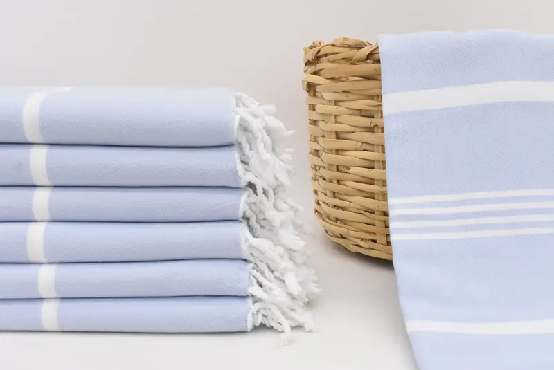 The handmade Turkish Peshtemal Towel is composed of 100% natural cotton, ensuring superior absorbency and durability. Measuring 70 inches by 36 inches (180 cm by 90 cm), the towel exhibits a weight range of 8-10 ounces (250-300 grams). Hand weaving may result in slight size variations up to 2.5 cm.