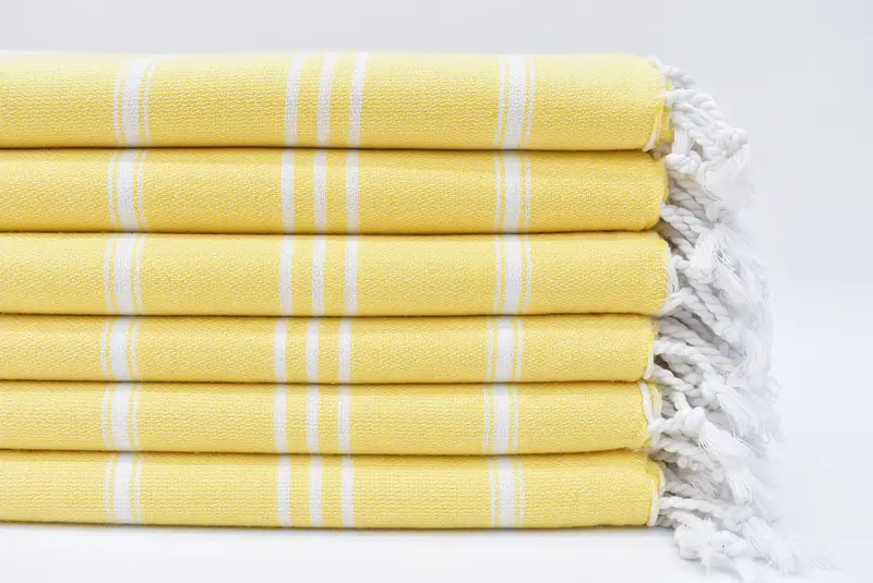 Characterized by its 100 percent organic cotton composition, the Turkish Hand Towel exhibits superior absorbency and durability. Ensuring a soft and gentle texture, the organic cotton enhances its usability as dish towels, bath towels, or kitchen towels. The towels, measuring 40x24 inches or 100x60 centimeters, offer a tolerance of 1-2.5cm due to hand-weaving, providing slight variations in size.