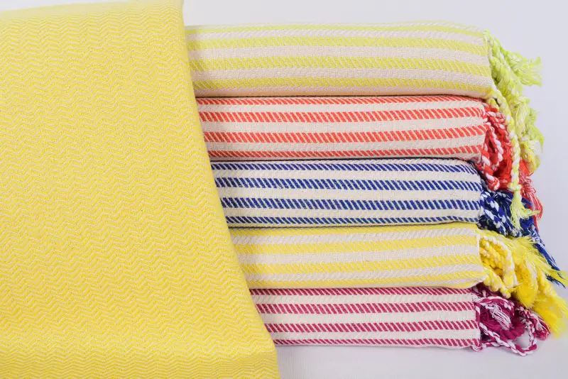 Turkish cotton presents a luxury organic fiber composition, ensuring superior absorbency and durability for bath and beach towels. Characterized by a hand-woven structure, these towels measure 67x40 inches (170x100 cm) with a weight of 440 grams (15.5 ounces). Tolerances in weaving can result in minor size variations of up to 2.5 cm.