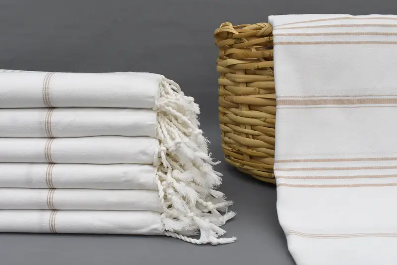 Engineered from 100% natural cotton, this Turkish bath towel ensures breathability and durability. It exhibits dimensions of 180 x 100 cm or 70 x 40 inches, with a hand-weaving tolerance of approximately 1-2.5 cm. Weighing between 200 and 300 grams, the towel balances lightweight comfort and absorbent capacity.