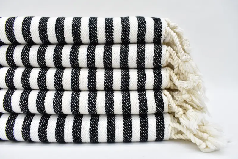 The Turkish hand towel is distinguished by its 100% natural cotton composition, ensuring a soft and absorbent texture. Characterized by its 40 x 24 inches dimensions, this towel translates to 101.6 x 61 cm, featuring a tolerance of up to 2.5 cm in size due to hand-weaving. Weighing between 60 to 120 grams, it provides a balance of lightweight and durability.