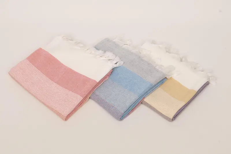 Turkish bath towels are meticulously crafted, ensuring an organic cotton composition that guarantees high absorbency and sustainability. Characterized by dimensions of 67x40 inches or 170x100 centimeters, with a tolerance of 1-2.5 cm, these towels weigh approximately 230 grams or 8.1 ounces. Precision in hand-weaving results in consistent quality, delivering a refined texture for various uses.