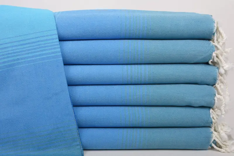 Handcrafted from 100 percent Turkish cotton, the beach towel is characterized by its high absorbency, ensuring optimal moisture wicking. It measures 67x36 inches (90x170 cm) with a tolerance of up to 2.5 cm, resulting in a lightweight fabric of 280 grams. These towels are pre-shrunk to maintain their dimensions.