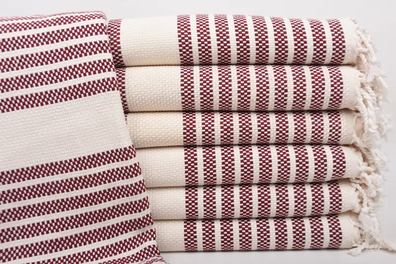 Turkish towels are composed of 100% organic cotton, ensuring high-quality absorbency and softness. Characterized by a size of 70x40 inches or 100x180 cm, these towels weigh 450 grams. Due to the hand-weaving process, the dimensions may vary slightly by up to 1-2.5 cm.