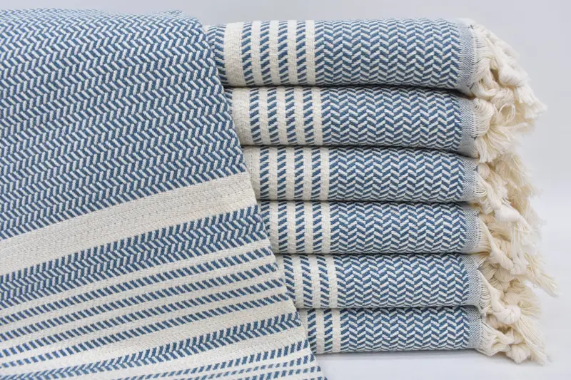 Characterized by a fiber composition of 100% organic cotton, these towels ensure high absorbency and softness. Resulting in dimensions of 70x40 inches or 180x100 cm, they weigh approximately 400 grams. Due to the hand-weaving process, variations of up to 2.5 cm in size may occur.