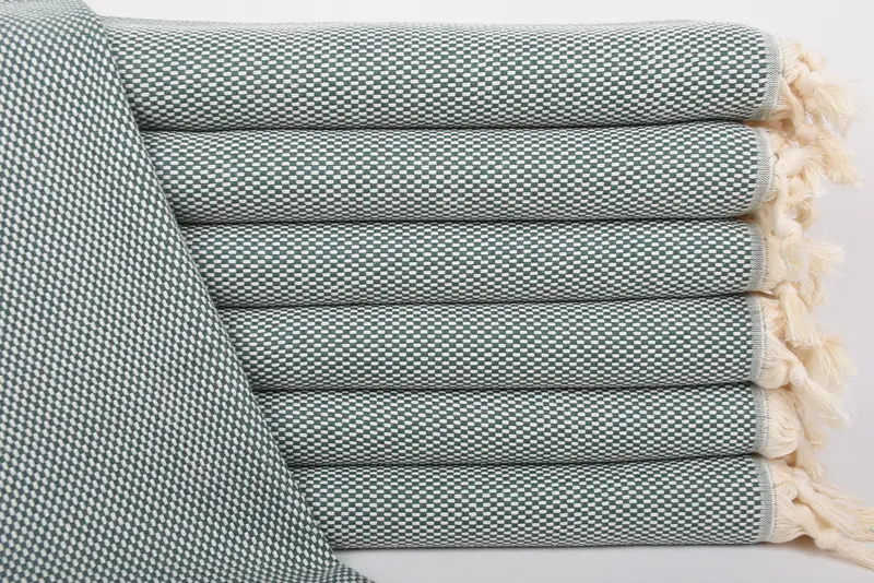 These towels are composed of 100 percent organic cotton, ensuring a high-quality and absorbent material that is both durable and soft. Characterized by dimensions of 40x18 inches or 100x45 cm, each hand-woven towel might exhibit slight variations in size due to weaving, typically within a tolerance of 1-2.5 cm. The towels weigh approximately 120 grams or 4.2 ounces.