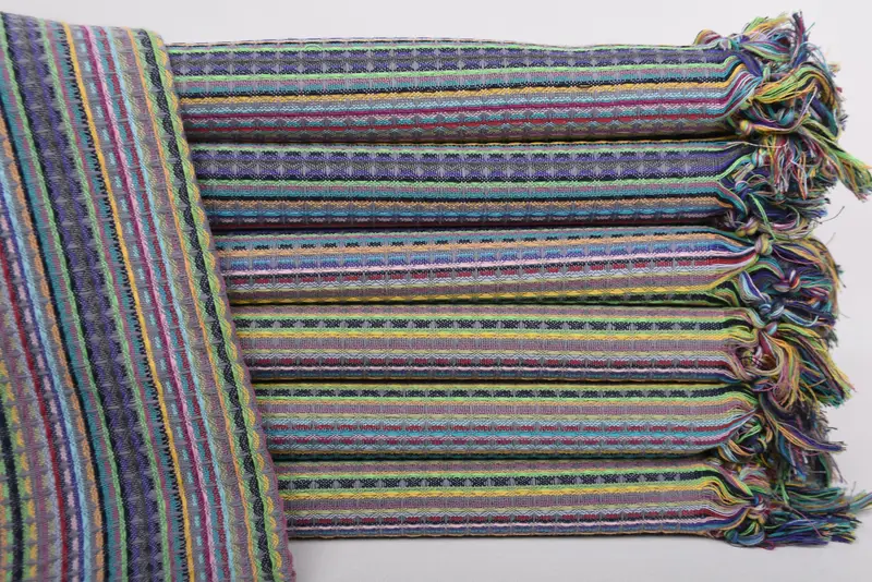 Each Turkish towel is characterized by its 100 percent Turkish cotton material, ensuring exceptional absorbency and a soft texture. The towels are available in sizes of 70x40 inches or 100x180 centimeters, with a tolerance of up to 2.5 centimeters due to the hand-weaving process. Weighing approximately 375 grams, these towels are lightweight yet durable.