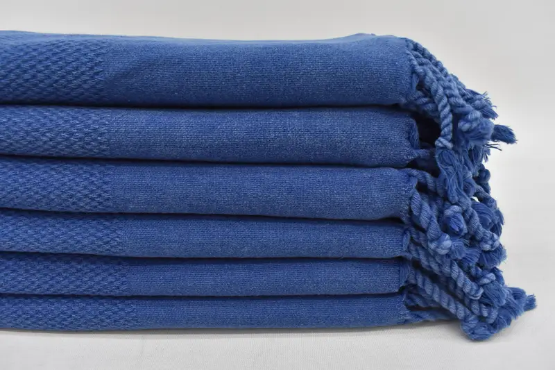 The Turkish Hand Towel is characterized by its material composition, ensuring durability and high absorbency. Crafted from 100% natural cotton, this hand towel measures 48 inches by 18 inches, corresponding to 120 centimeters by 45 centimeters. The product's weight ranges between 60 and 120 grams, with minor variations due to hand-weaving tolerances of up to 2.5 centimeters.