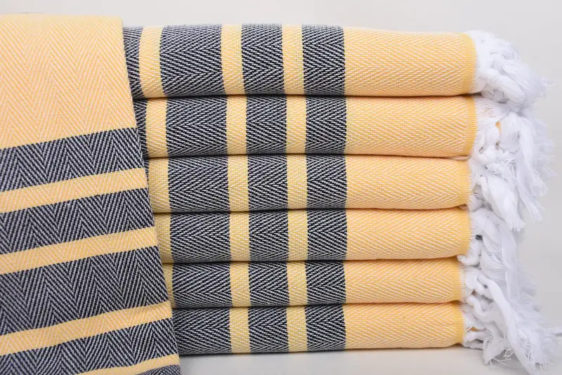 The Personalized Turkish Towel is characterized by its 100 percent organic cotton composition, ensuring a highly absorbent material suitable for various uses such as beach towels, bath towels, and tablecloths. The towel measures 67x36 inches (170x90 cm) and weighs 380 grams, with potential weaving tolerances of up to 1-2.5 cm.