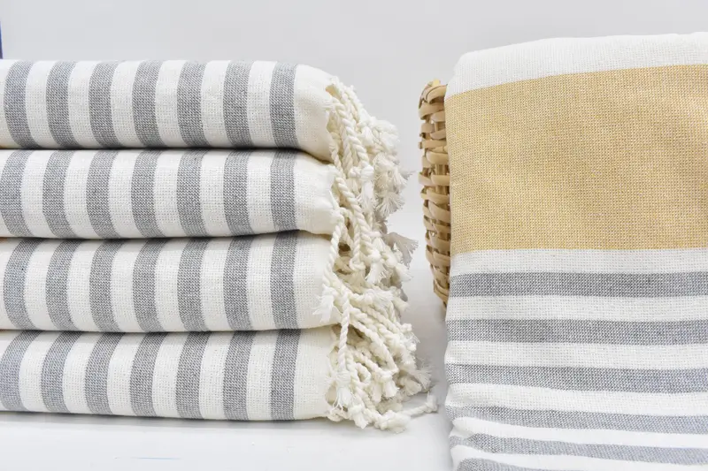 Each beach towel is woven from 100 percent organic cotton, ensuring superior absorbency and durability. Characterized by its high-quality material, the towel is designed to maintain its softness and effectiveness even after repeated use. Dimensioned at 67x36 inches (170x90 cm), the towel weighs 380 grams, with a possible deviation of 1-2.5 cm due to hand-weaving techniques.