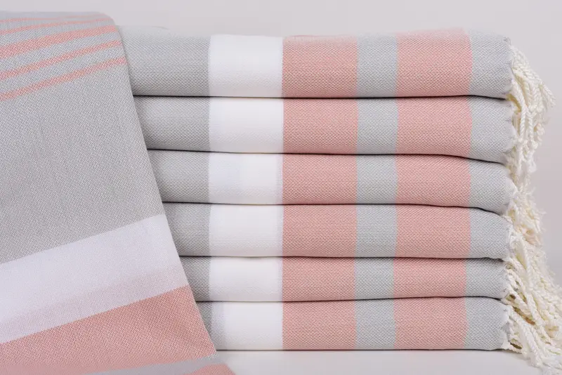 The product is characterized by its material composition, crafted from 100 percent organic cotton, ensuring superior absorbency and a soft texture. Each beach towel measures 70x40 inches (180x100 cm) and weighs approximately 280 grams, with tolerances of 1-2.5 cm due to hand-weaving. Customization is available through embroidery, allowing for personalized monograms or messages, enhancing the gift appeal. Orders are shipped globally via DHL Express or FedEx within 3-5 days, with return policies restricted to non-personalized items.