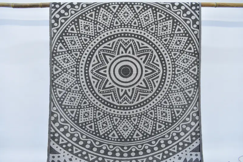This Turkish towel is fabricated from 100 percent organic cotton, ensuring high absorbency and eco-friendliness. Characterized by dimensions of 70x40 inches or 180x100 centimeters, the towel weighs 300 grams and features a tolerance of 1-2.5 cm in size due to hand-weaving.