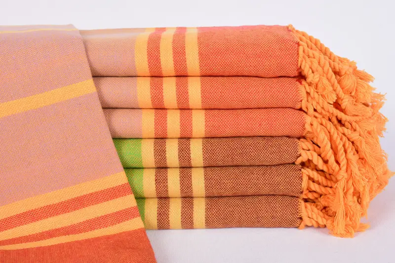 The 70"x36" Red-Purple Striped Towel is crafted from 100% organic cotton, ensuring high absorbency and durability. Characterized by a dimension of 180x90 cm, this Turkish beach towel weighs 260 grams, with a hand-weaving tolerance of up to 2.5 cm. Each towel is meticulously embroidered with personalized monograms, enhancing its bespoke appeal. Global shipping is available through DHL Express and FedEx with a delivery period of 3-5 days. Customization options include monogram letters/logo, color, and font, but note that returns or exchanges are ...