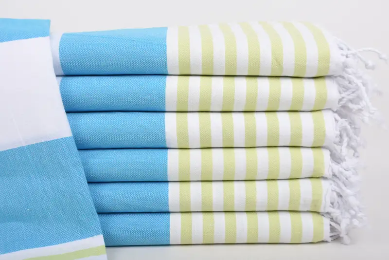 Turkish towels are composed of 100% organic cotton, ensuring high absorbency and comfort. Characterized by precise hand-weaving, these towels measure 70x40 inches (100x180 cm) with a tolerance of 1-2.5 cm, offering a luxurious feel. Resulting in a weight of 300 grams, these towels provide durability and quality.