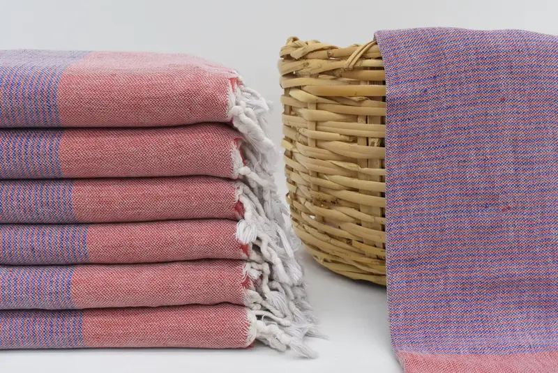 The product is characterized by its material, an organic cotton composition, ensuring high absorbency and sustainability. The towels are meticulously hand-woven in Turkey, resulting in dimensions of 60x40 inches (150x100 cm). A tolerance of 1-2.5 cm in size may occur due to the weaving process.