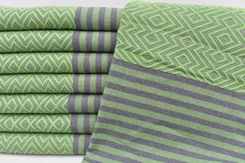 Composed of 100 percent organic cotton, these beach towels are characterized by their softness and high absorbency, ensuring optimal utility for various occasions. The towels have dimensions of 70x40 inches, equating to 180x100 centimeters, with a weight of 430 grams, resulting in a lightweight yet durable texture. Due to the hand-weaving process, minor variations of up to 1-2.5 centimeters in size may occur.