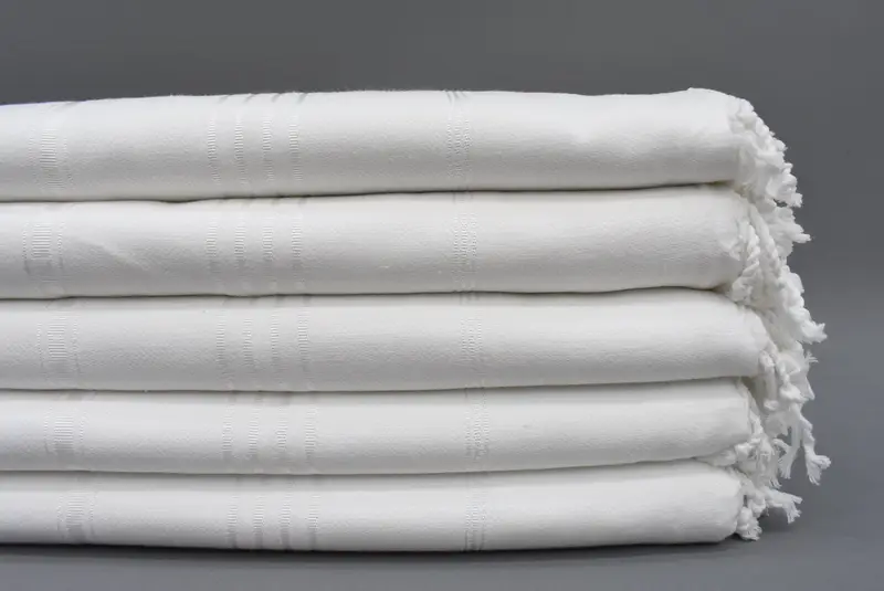 The Turkish Towel is constructed from 100 percent organic cotton, ensuring both sustainability and high-quality absorbency. Characterized by a hand-woven composition, it measures precisely 70x40 inches or 180x100 centimeters, with a permissible weaving tolerance of 1-2.5 cm. The towel weighs 300 grams (10.6 ounces) and is pre-shrunk.