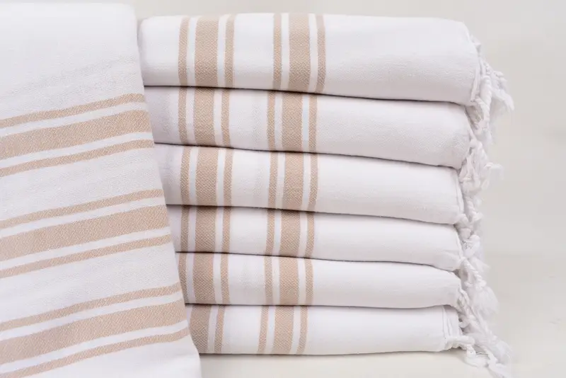 The 70" x 40" Beige Striped Towel is woven from 100% organic cotton, ensuring high absorbency and sustainability. Characterized by its dimensions of 180 x 100 centimeters and a weight of 280 grams, the towel exhibits slight variations in size due to hand-weaving, typically within a range of 1-2.5 centimeters. Tailoring the towels through embroidery, with options for monogramming letters, colors, and fonts, personalizes the product, resulting in a unique gift suitable for various occasions. Embroidery customization ensures pre-shrunk towels read...