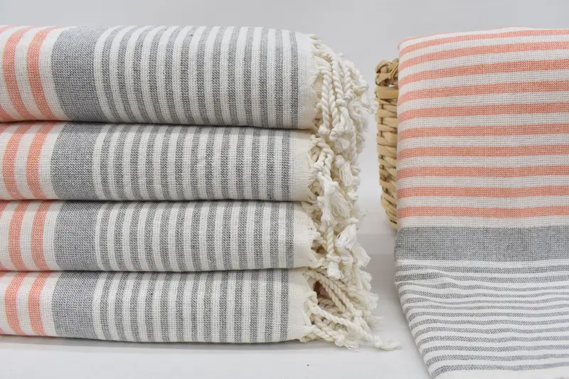 The Turkish Beach Towel is meticulously crafted from 100 percent Organic Cotton, ensuring superior absorbency and durability. Each towel measures 67x40 inches or 170x100 centimeters, with a slight variance of 1-2.5 centimeters possible due to hand-weaving techniques. Weighing 430 grams, these towels offer a balanced weight for various uses.