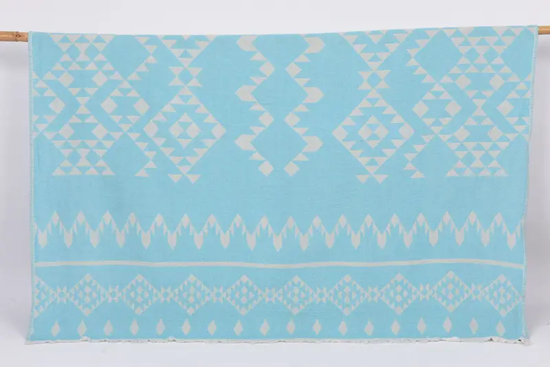 These beach towels are woven from 100 percent organic cotton, ensuring excellent absorbency and environmental friendliness. Resulting in a product characterized by sustainable practices, the towels measure 70x40 inches (180x100 centimeters) with a tolerance of up to 2.5 centimeters, weighing 330 grams. Each towel, hand-woven with precision, allows for slight variations due to the weaving process.