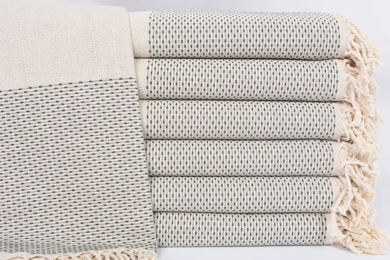 The product is crafted from 100% organic cotton, ensuring a sustainable and eco-friendly fiber composition. The towel exhibits excellent absorbency, which is vital for its intended use as a bath, beach, or hand towel. Dimensions of the towel are 70x40 inches, equating to 180x100 centimeters, with a potential variation of 1-2.5 centimeters due to hand-weaving tolerances. The towel weighs 480 grams, providing a moderate yet substantial weight for practical usage.